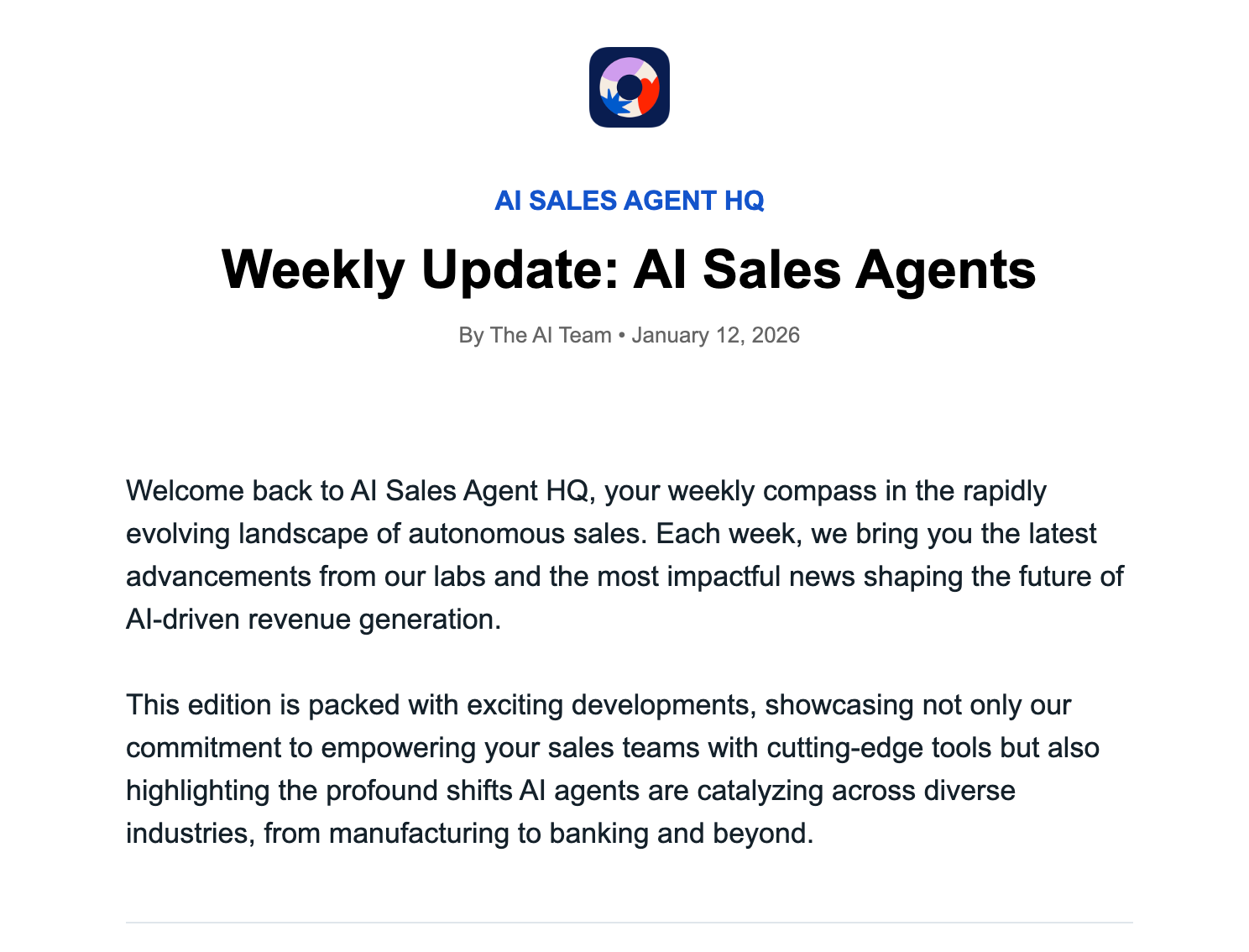 Next, it turns outward. Based on a topic you define (e.g., "AI Sales Agents" or "FinTech Trends"), it searches the broader web for the most significant news stories of the week, filtering out noise to find the signal.